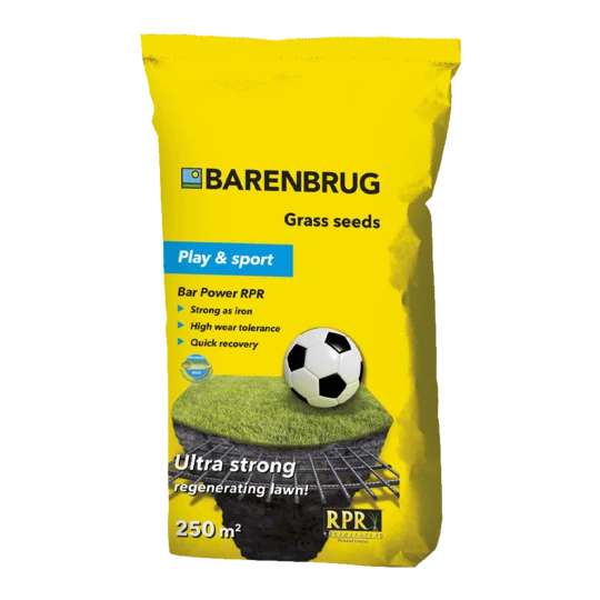 Met Barenbrug Bar Power RPR wordt voor het eerst sterkte en snelheid tot het uiterste geduwd. Nooit meer lang wachten op een mooie en vooral groene grasmat. De zode van het gras is sterk doordat het zo dicht groeit. Hierdoor kan het gras al snel intensief betreden worden. Normaal gesproken worden veldbeemdgrassen voor de sterkte en Engels raaigrassen voor de snelheid gebruikt. Hierdoor heb je snel een grasmat, maar wel ten koste van de betredingstolerantie. Bar Power combineert het beste van beide werelden in het RPR-mengsel. Snel en sterk gras, wat wil een mens nog meer?
